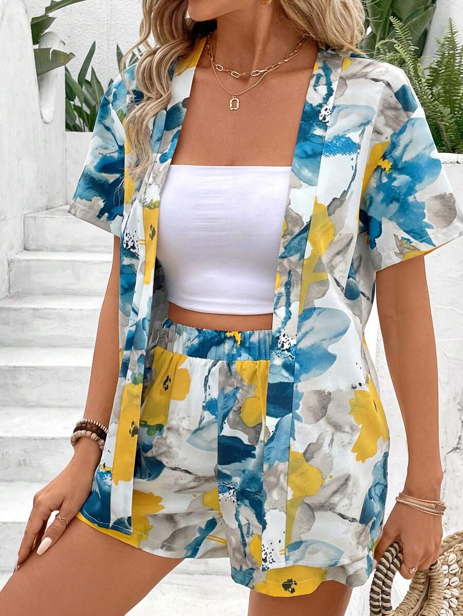Bold Rush Women's Full Printed Kimono Shirt And Shorts Set