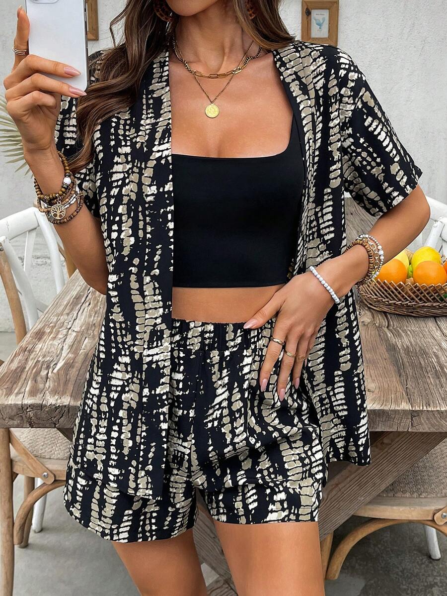 Bold Rush 2pcs Women Tie-Dye Print Short Sleeve Kimono And Shorts Casual Set