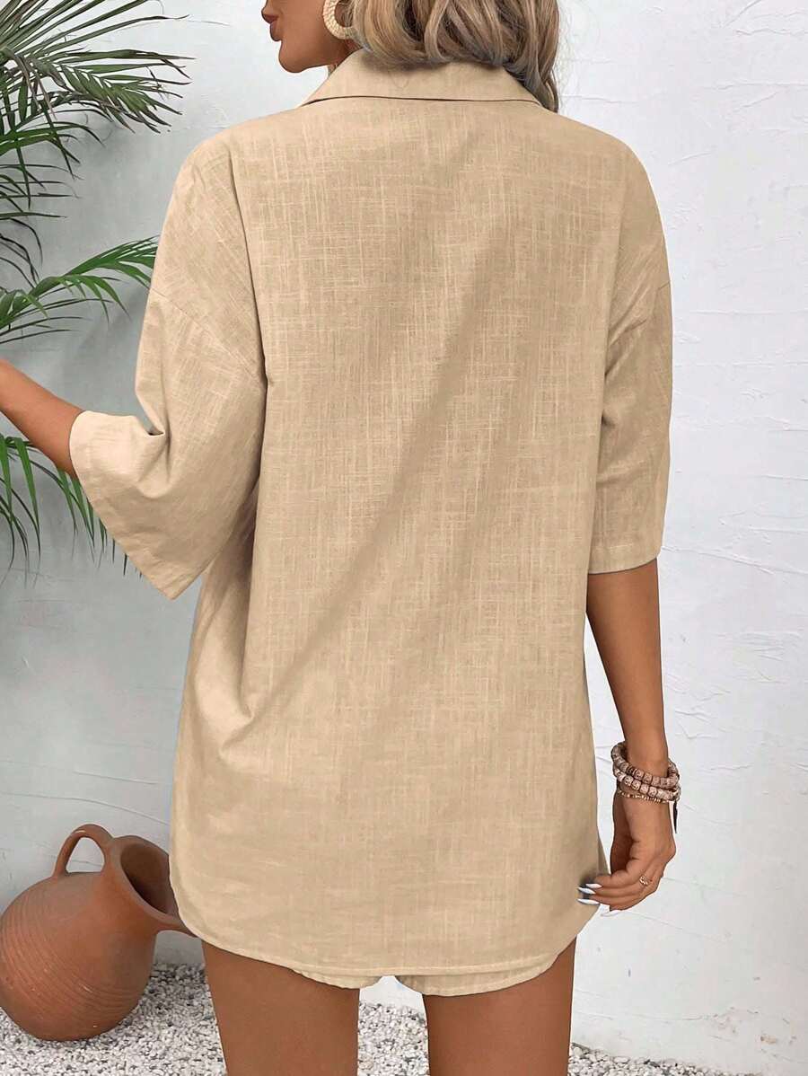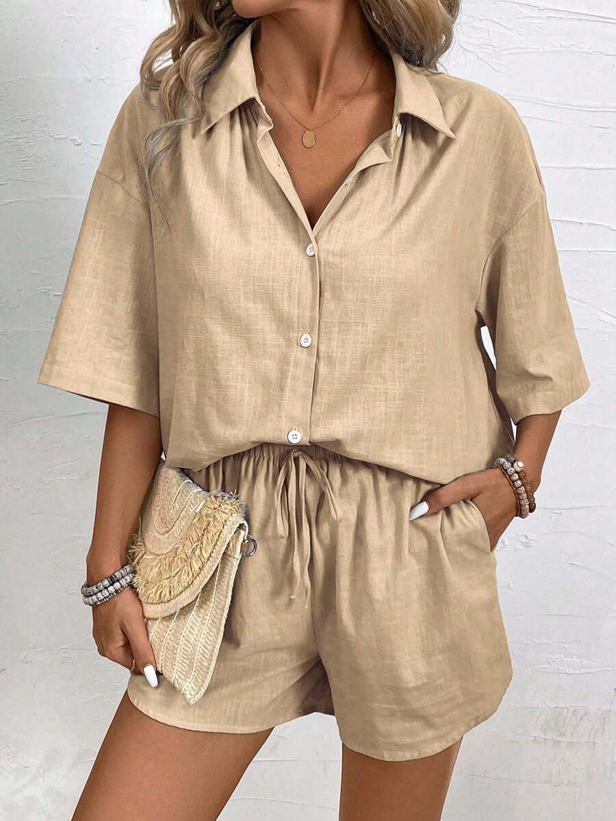 Bold Rush Solid Button Front Shirt & Drawstring Waist Shorts