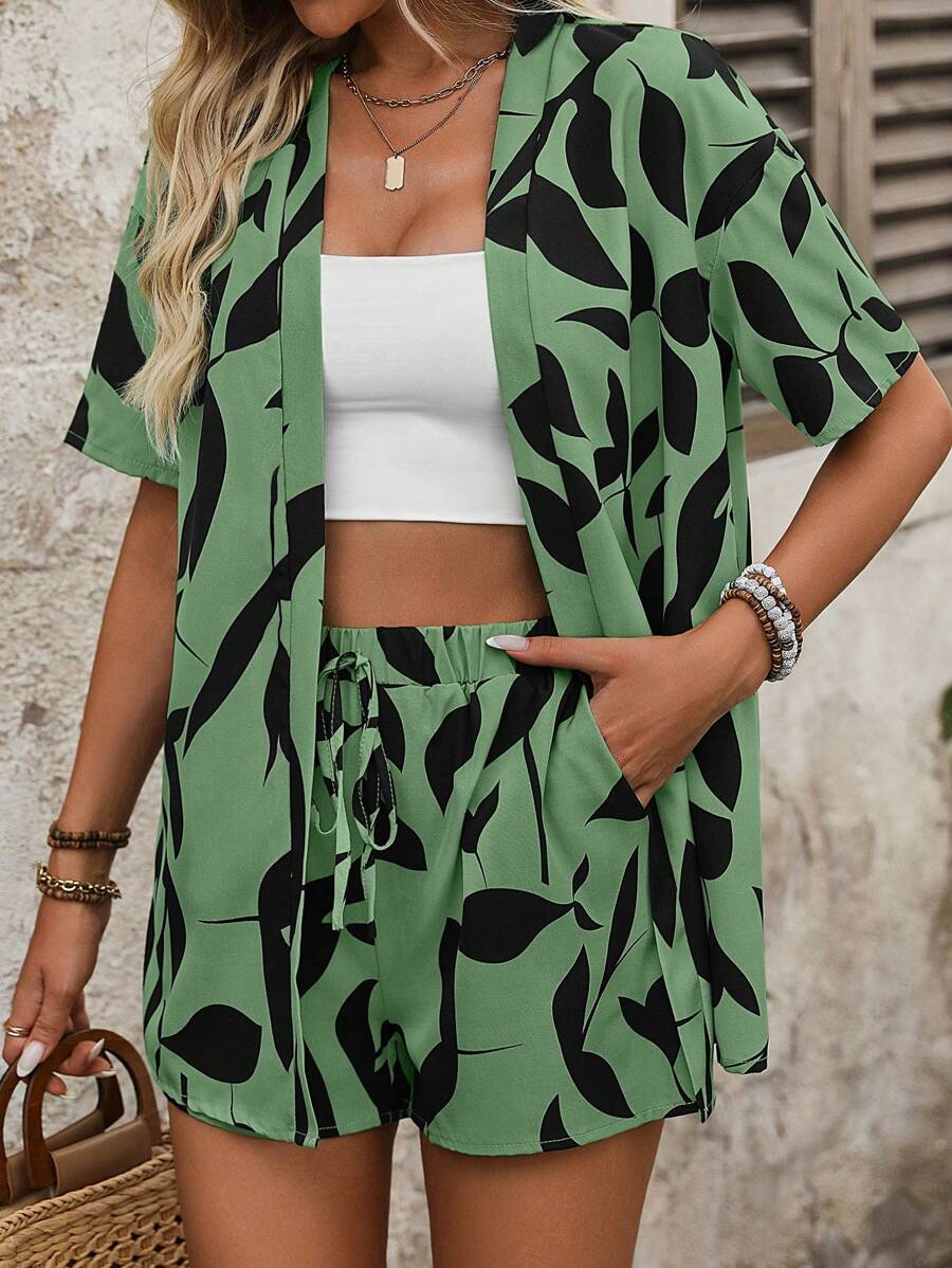 Bold Rush Women's Random Print Shirt And Shorts Simple Daily Outfit Set
